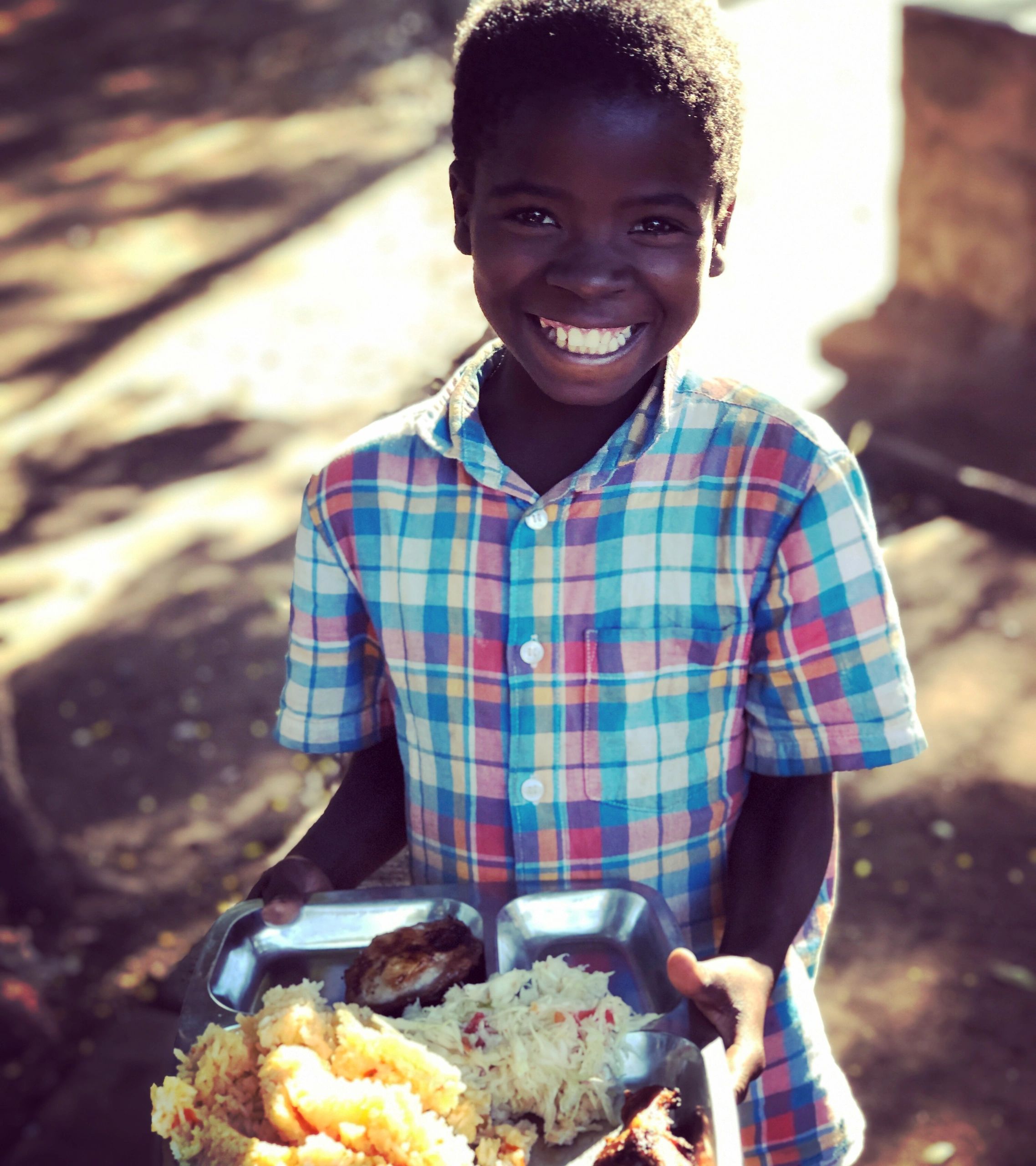 Students are required to bathe and come for lunch in clean clothes. Lunch begins with singing to let stragglers know that the time is fast approaching. The sound of songs and drums travels through the village and let feet know to stop dragging hustle to the campus. After giving thanks for the meal, students line up according to age and wash their hands, then queue for their plate. Lunch includes nsima, which is a mash made from maize, Malawi's staple crop. To this we add stewed veggies and a protein such as beans, soya or fish.
